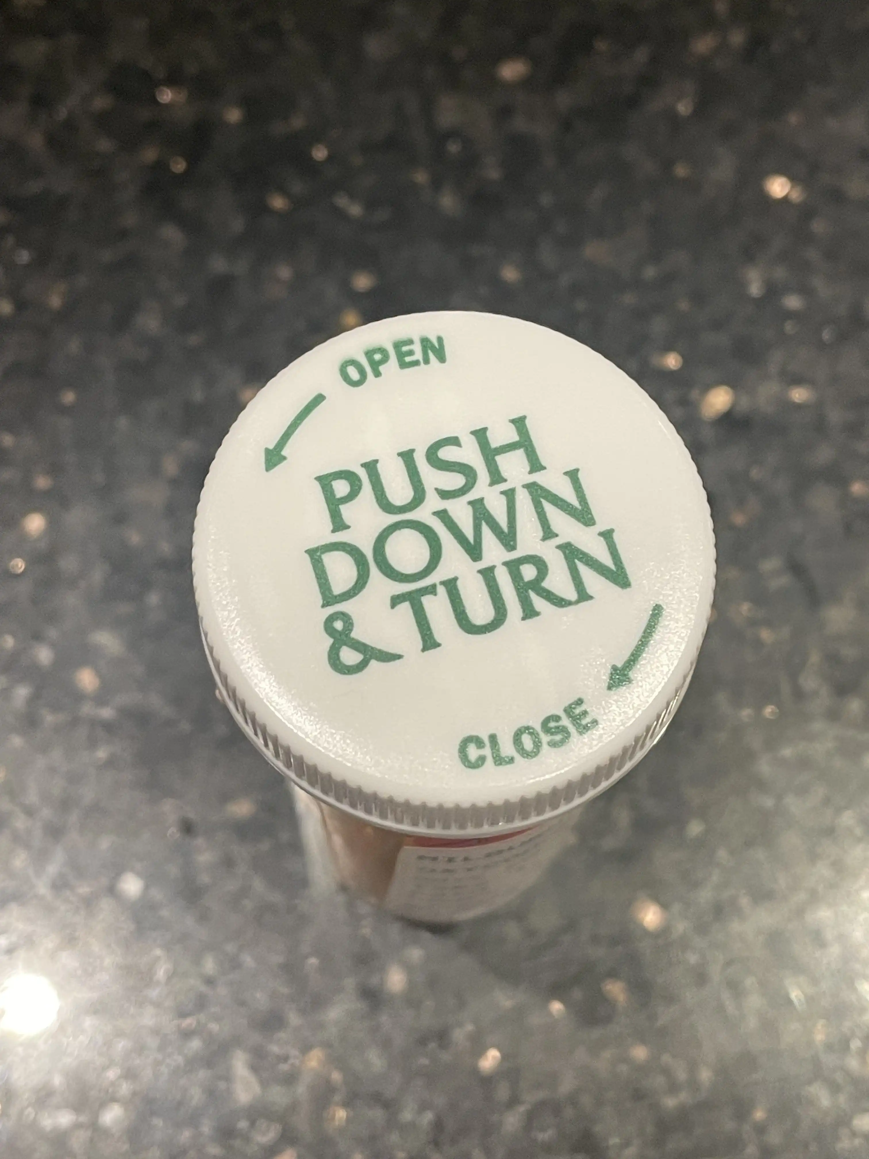 MSK pill bottle lid instructions use the Law and Order font